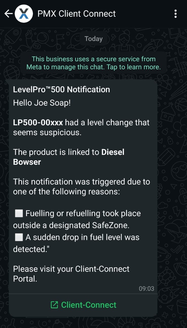 Get updates, alerts and information about your sensor via Whatsapp.